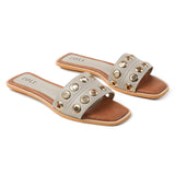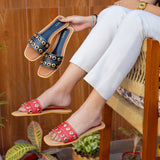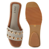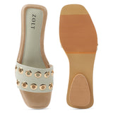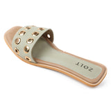 Step into style and comfort with these ZOLT flats, designed for a secure fit and all-day wearability. Made from PU Vegan Leather with an intricate hand-stitched ring upper, these open-toe flats are perfect for festive and party occasions. With a cushioned insole and synthetic sole sheet, they ensure comfort with every step.